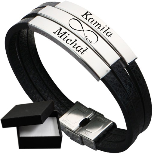 Piękna i oryginalna bransoletka wykonana ze stali szlachetnej z grawerem gratis.