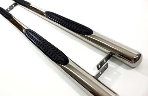Produkt został wykonany z wysokiej jakoci stali polerowanej o średnicy 3 cali, 76mm. Na każdej jest zamontowany plastikowy stopień ( nakładka ), wejście do każdych drzwi.