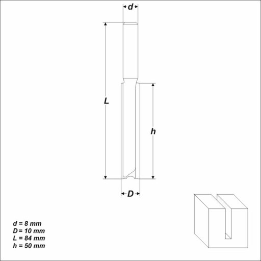 RT-08-304 – Frez do wpustów, dwuostrzowy Ø [10 x 50 mm; trzpień 8 mm]