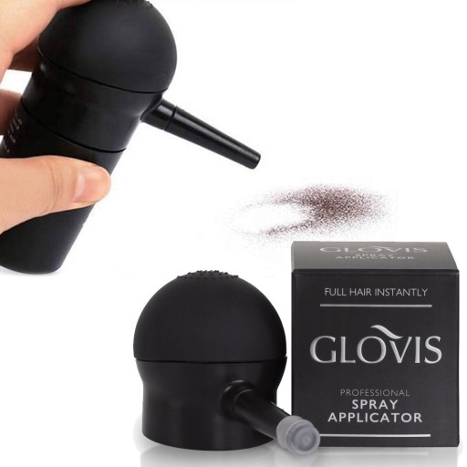 Opatentowany, specjalny aplikator GLOVIS pozwala na precyzyjnie nałożenie mikrowłókien sypanych w każdym miejscu na głowie. Przy włosach mocno przerzedzonych, a w szczególności przy przedniej linii włosów trudno jest o naturalne zagęszczenie włosów.