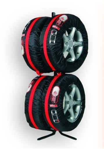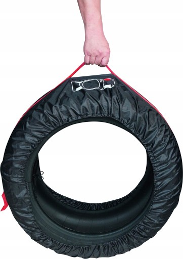 Pokrowce na opony posiadają oznakowanie położenia opon oraz specjalny uchwyt do łatwego przenoszenia oraz powieszenia.
