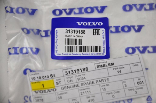 emblemat logo znaczek na osłonę / obudowę silnika, 31319188 OE, część fabrycznie nowa, oryginalna