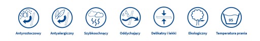 Możliwość wielokrotnego prania w temperaturze do 95°C bez utraty właściwości materiału.