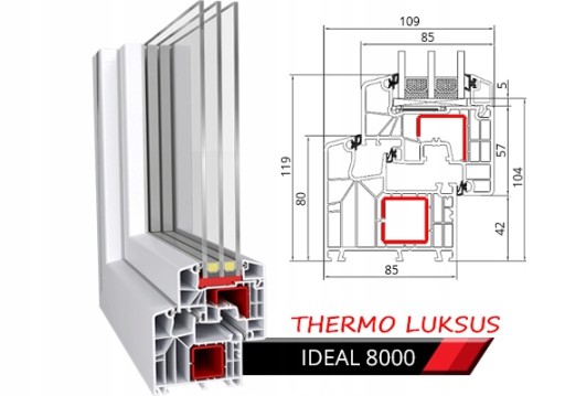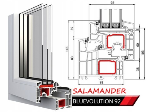 - Stalowy profil zamknięty w ramie ( dla zwiększenia sztywności okna )