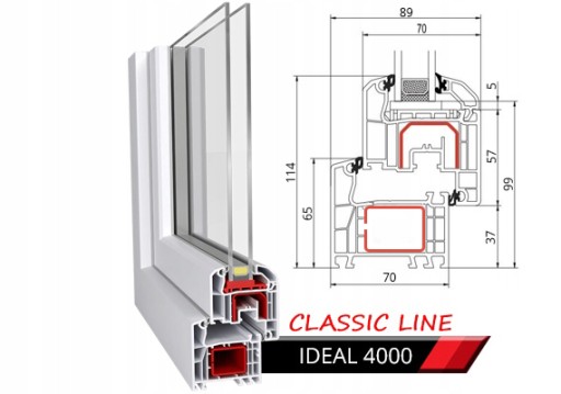 - Standardowy prosty, dwu uszczelkowy profil okienny