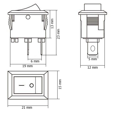 Przełącznik kołyskowy KCD1 to przełącznik ON/OFF. Posiada wyprowadzenia 2 PIN do zalutowania przewodów bądź nasunięcia konektora samochodowego. Zastosowanie w urządzeniach elektrycznych, elektronicznych. Posiada wszechstronne zastosowanie.