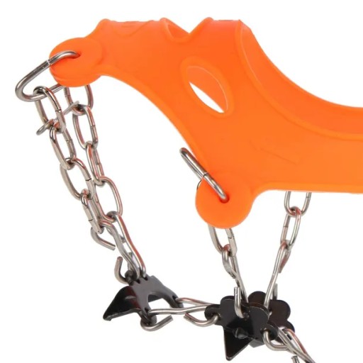 Skutecznie chronią przed poślizgnięciem się i upadkiem, dzięki zastosowaniu łańcucha oraz 8 haków z hartowanej stali. Nie męczą nóg, są bardzo lekkie. Dobrze dopasowują się do kształtu buta. Dzięki zastosowaniu silikonu można je dopasować do obuwia o kilku rozmiarach (38-45)