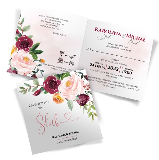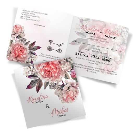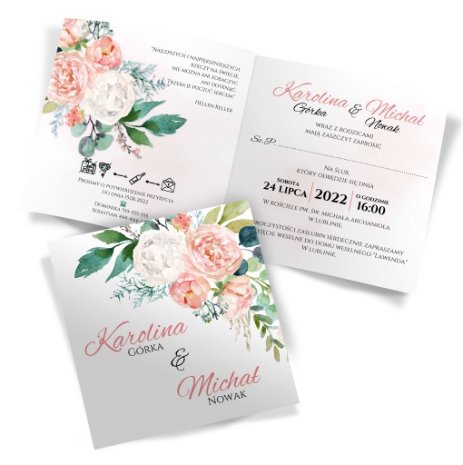 Każdy wzór posiada DOPASOWANE DO FRONTU zaproszenia wnętrze.