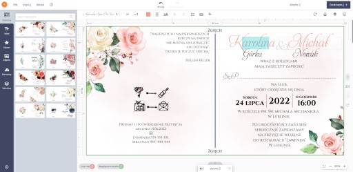 Poniżej przykładowe wzory zaproszeń do wyboru w kreatorze