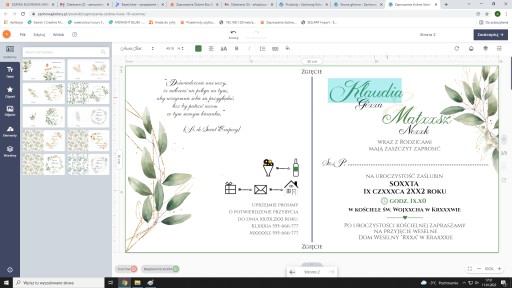 Poniżej przykładowe wzory zaproszeń do wyboru w kreatorze