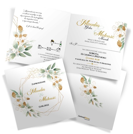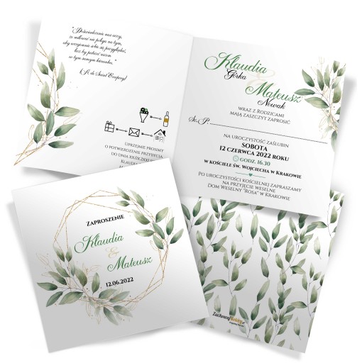 Każdy wzór posiada DOPASOWANE DO FRONTU zaproszenia wnętrze.