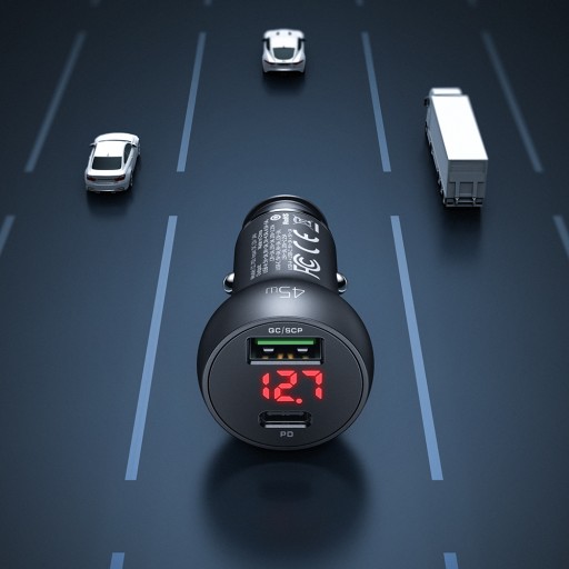 Digital to prawdziwie szybka ładowarka samochodowa. 45 watów mocy i dwa porty USB i USB-C napędzą każde Twoje urządzenie. Laptop? Nie ma sprawy ;) Dwa porty ładowania szybko i bezpiecznie naładują Twój sprzęt, jednocześnie dbając o baterie. Nowoczesny design z wbudowanym wyświetlaczem Elektryzuje i przyciąga uwagę. A autorski układ scalony zapewnia bezpieczne i szybkie ładowanie