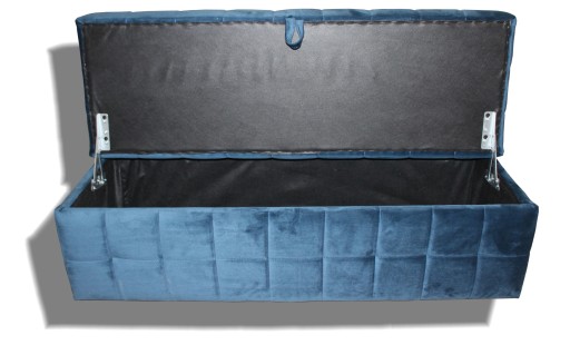 PUFA OTWIERANA NA STANDARDOWYM ZAWIASIE. NA INNEJ AUKCJI MOŻLIWOŚĆ DOKUPIENIA KOMPLETU ZAWIASU DŹWIGNIOWEGO, UMOŻLIWIAJĄCEGO OTWIERANIE PUFY BEZ ODSUWANIA OD ŚCIANY