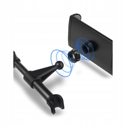 Szybki i prosty montaż uchwytu do zagłówka, bez konieczności użycia jakichkolwiek narzędzi. Zamocowany uchwyt można obracać o 360 stopni.