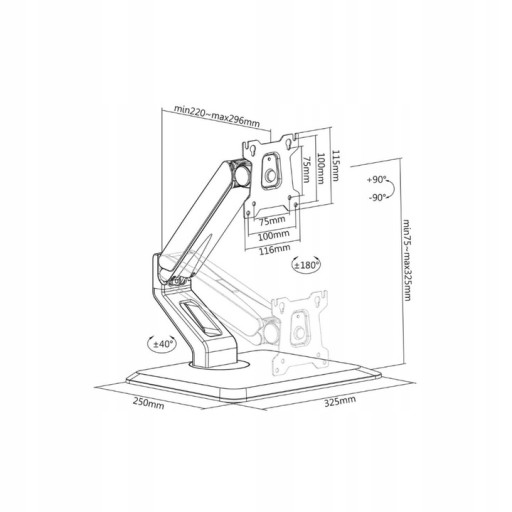 Podstawa o wymiarach 325x250 mm zapewnia stabilność, a dzięki szerokiemu wachlarzowi możliwości regulacji możesz z łatwością dostosować pozycję i kąt nachylenia ekranu do własnych potrzeb.