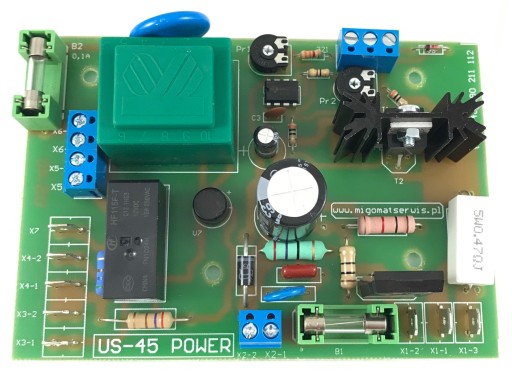 Przedmiotem sprzedaży jest płytka z elektroniką do migomatów BESTER MiniMAG 1500 MidiMag Midimagster 1800 1801 1803 Turbo i podobnych posiadających płytę z oznaczeniem US-45, US-45A, US-45B, US-45C itp