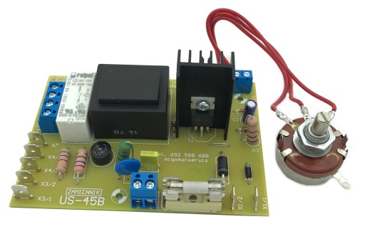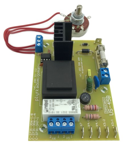 Na innej aukcji mam wersję "SUPER MOCNĄ" z podwójnymi tranzystorami mocy, i wieloma innymi dodatkowymi "wzmocnieniami" i zabezpieczeniami, która pasuje zamiennie 100% za US-45B / A / C / S... (proszę szukać płyty US45 POWER w aukcjach użytkownika projekt-migomat). Płytę US45 POWER widać na fotografii obok.