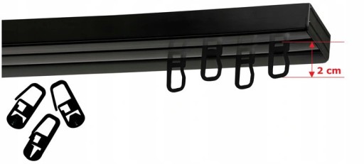 - Szerokość szyny i rozmieszczenie torów zapobiega nachodzeniu zasłon na siebie, zapewniając płynne przesuwanie zasłon