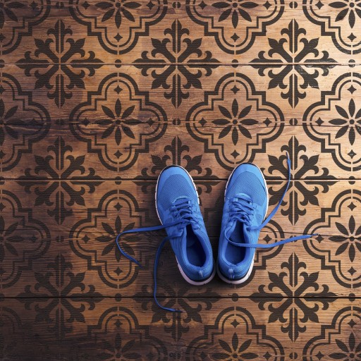 Nakleo Tile Collection to szablony malarskie wielokrotnego użytku wykonane z wytrzymałego tworzywa sztucznego będące imitacją wzorów występujących na płytkach ceramicznych. W kolekcji dostępne są zarówno klasyczne renesansowe wzory, motywy orientalne jak i współczesne kompozycje geometryczne. Prezentowany na tej aukcji wzór ma wymiary 45x45cm. Na innych aukcjach dostępne są również formaty 10x10cm, 15x15cm, 20x20cm, 25x25cm, 30x30cm, 33x33cm oraz 60x60cm. Szablony można używać dowolną ilość razy dzięki czemu z łatwością pokryjesz nawet największe powierzchnie dowolną kompozycją wzorów i kolorów.