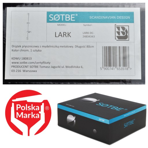 Regulowany drążek prysznicowy SOTBE LARK Drążek prysznicowy z mydelniczką
