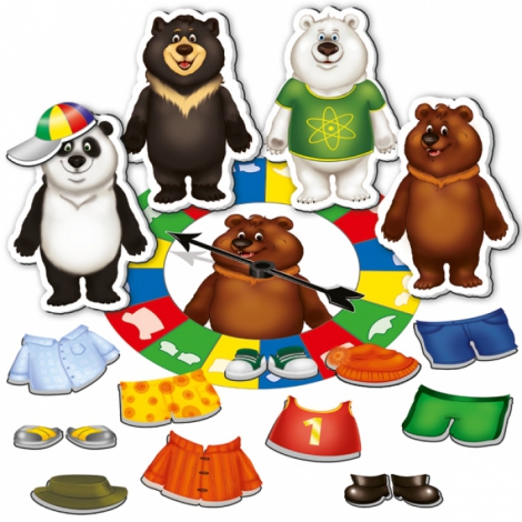 Gra wieloosobowa polegająca na ubieraniu misiów w różne stroje przy pomocy magnesów. Każdy z graczy musi wybrać po jednym niedźwiadku, którego będzie ubierał w czasie gry. Zakręćcie strzałką na kole i załóżcie misiowi tą część odzieży, którą Wam wskaże. Medal zwycięzcy otrzyma ten, kto pierwszy ubierze swojego misia. Gra rozwija małą motorykę, pobudza wyobraźnię, uczy bawić się w zespole według określonych reguł.
