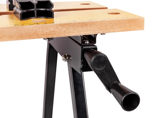 Dodatkowo blat wyposażony został w przekładane szczęki zaciskowe umożliwiające mocowanie na stole przedmiotów o różnych kształtach.