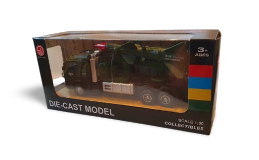 Ciężki sprzęt wojskowy odzwierciedlony w skali 1:60 Kolekcja Modeli z wyrzutniami armatnimi, amunicją, ciężarówką z opuszczanymi bokami. Wszystko stworzone by uświadomić dzieci jak wygląda prawdziwy sprzęt Wojska.