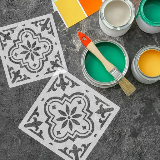 Nakleo Tile Collection to szablony malarskie wielokrotnego użytku wykonane z wytrzymałego tworzywa sztucznego będące imitacją wzorów występujących na płytkach ceramicznych. W kolekcji dostępne są zarówno klasyczne renesansowe wzory, motywy orientalne jak i współczesne kompozycje geometryczne. Prezentowany na tej aukcji wzór ma wymiary 30x30cm. Na innych aukcjach dostępne są również formaty 10x10cm, 15x15cm, 20x20cm, 25x25cm, 33x33cm, 45x45cm oraz 60x60cm. Szablony można używać dowolną ilość razy dzięki czemu z łatwością pokryjesz nawet największe powierzchnie dowolną kompozycją wzorów i kolorów.