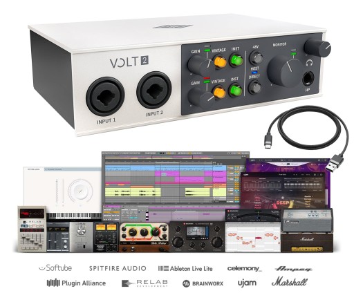 Niektóre interfejsy audio dają ci kilka przypadkowych aplikacji audio. Ale nie Volt. Zamiast tego UA stworzyło zestaw poważnych narzędzi do produkcji muzyki, wirtualnych instrumentów i wtyczek, w tym Ableton, Melodyne, UJAM Virtual Drummer, Marshall, Ampeg i wiele innych.