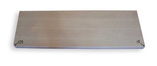 Rogi (z przodu stopnia) mogą być wykonane na ostro lub zaokrąglone frezem promień r5 , r25 , co widać na zdjęciu obok.