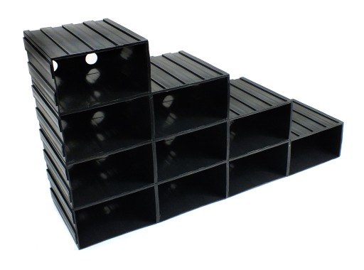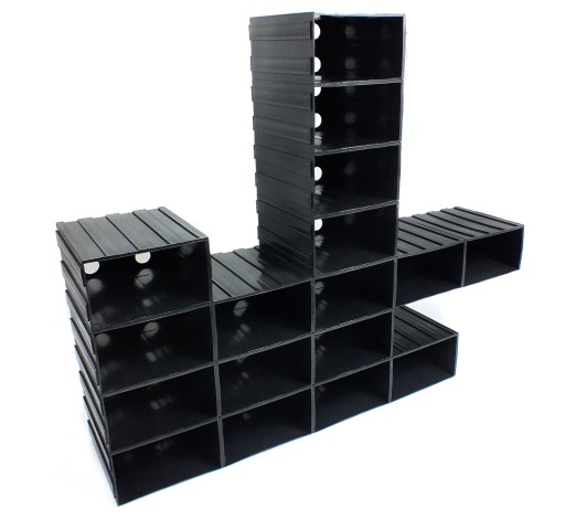 Specjalna konstrukcja szufladek umożliwia rozkładanie modułu na pojedyncze elementy, a następnie dowolną ich konfigurację. Dzięki szynom można je piętrować, łączyć w pionie oraz w poziomie.