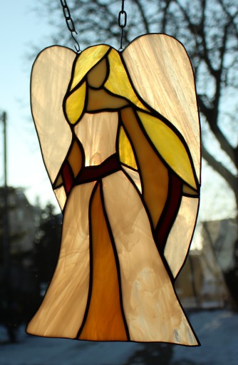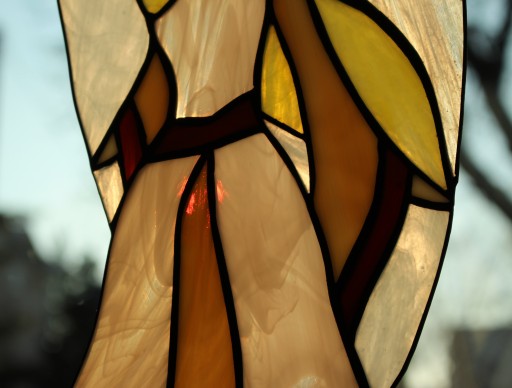 Szkło wycinane jest ręcznie i połączone ze sobą miedzią oraz cyną.