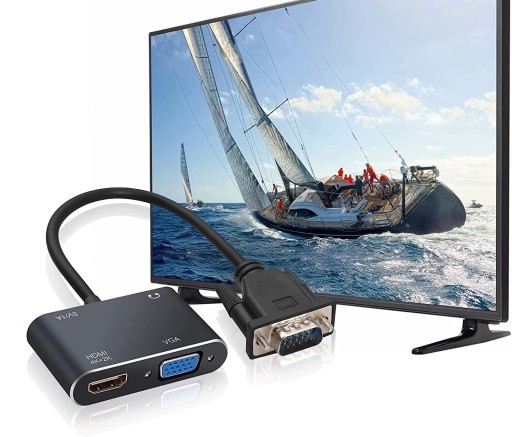 Umożliwia podłączenia komputera/laptopa oraz pozostałych urządzeń wyposażonych w złącze VGA do monitora, projektora lub telewizora wyposażonego w złącze HDMI.