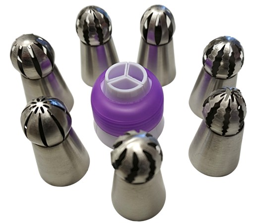 RĘKAW CUKIERNICZY + 7 KOŃCÓWEK TYLEK DO TWORZENIA DEKORACJI KWIATY + POTRÓJNY ADAPTER