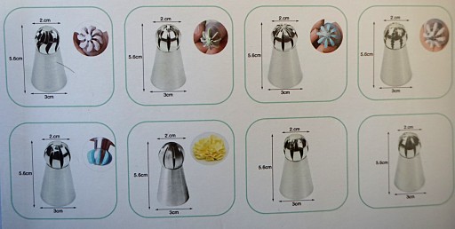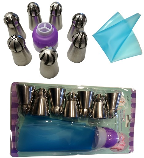 Dekorator tortu, ciast, ciasteczek 7 końcówek w zestawie o różnych zakończeniach. Wygodny i praktyczny rękaw do ozdabiania słodkości wykonany z silikonu. Można myć w zmywarce, dzięki stożkowej końcówce worka możemy dopasować różne inne końcówki do ozdabiania.