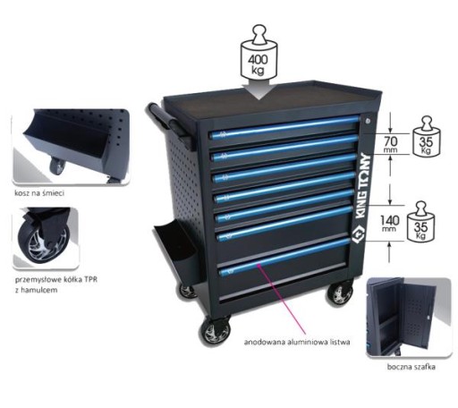 Wózek narzędziowy z kompletem 196 narzędzi King Tony