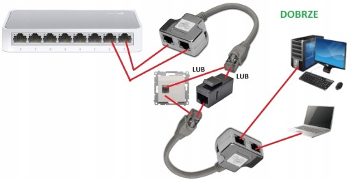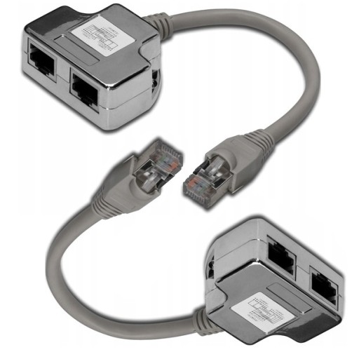 - 2x gniazdo RJ45 na 1x wtyczka RJ45