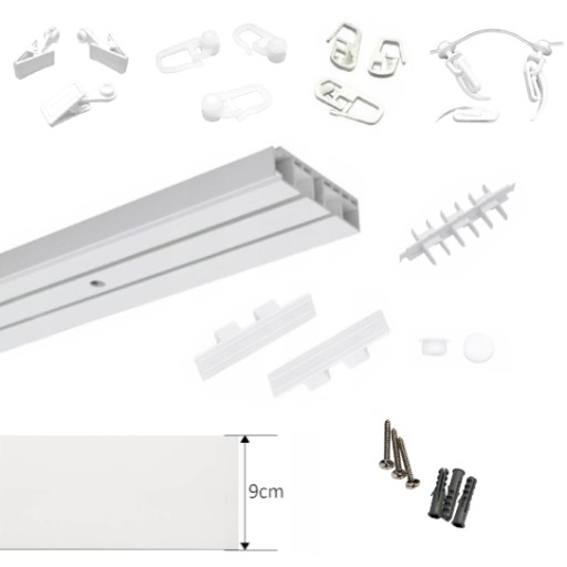 Karnisz sufitowy PODWÓJNY z maskownicą Szyna sufitowa z osłoną 9 CM 350