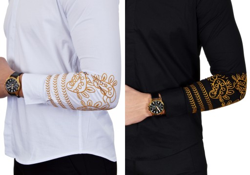 - wyszywane złote wzory na rękawach