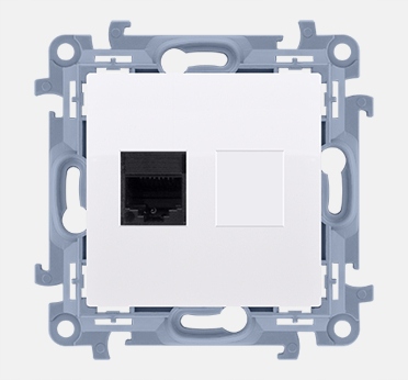 Najpopularniejsze gniazdo komputerowe RJ45 pojedyncze przeznaczone do podłączenia jednego kabla sygnałowego kategorii 5e (UTP) typu skrętka (internet).