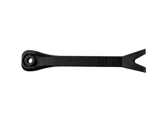 Profesjonalny ściągacz do demontażu spinek tapicerki, kołków i listew wykonany z utwardzonego nylonu, dzięki czemu nie powoduje zarysowań w porównaniu do metalowych ściągaczy.