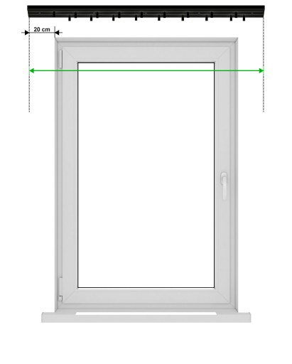 W celu doboru odpowiedniej długości szyny, zaleca się aby była ona szersza od wnęki okiennej minimum o 40 cm (20 cm na każdą stronę).