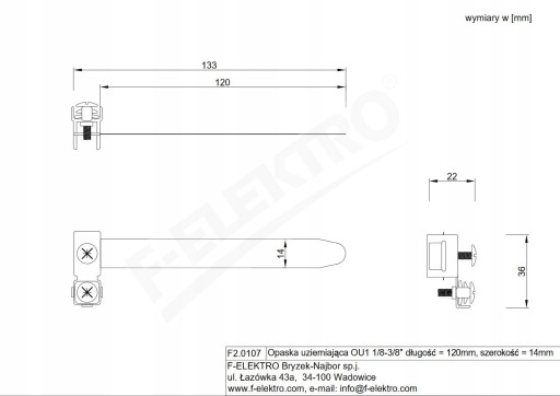 Opaska uziemiająca 1/8-3/8" dł=120mm,sz=14mm