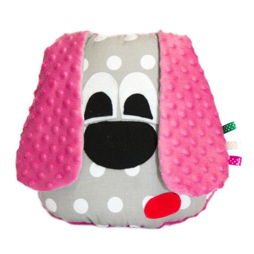 - Poduszkę szyjemy z wysokogatunkowej dzianiny Minky 380 g/m2 posiadającej Certyfikat "Bezpieczny dla dziecka", potwierdzony badaniami laboratoryjnymi. Dzianina Minky kropki wykonana z mikrowłókien jest bardzo miła i delikatna. Dzieci uwielbiają się do niej tulić.