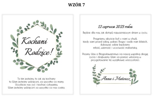 Poniżej prezentujemy wzory wnętrz do wyboru. Wybierają Państwo motyw graficzny oraz tekst. Możliwe jest tworzenie dowolnych kombinacji, czyli np. wybór motywu graficznego ze wzoru 4, a tekstu ze wzoru 1. Dopuszczana jest również zmiana czcionki.