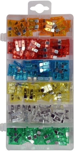 - po 20 szt.: 5 A, 10 A, 15 A, 20 A, 25 A, 30 A