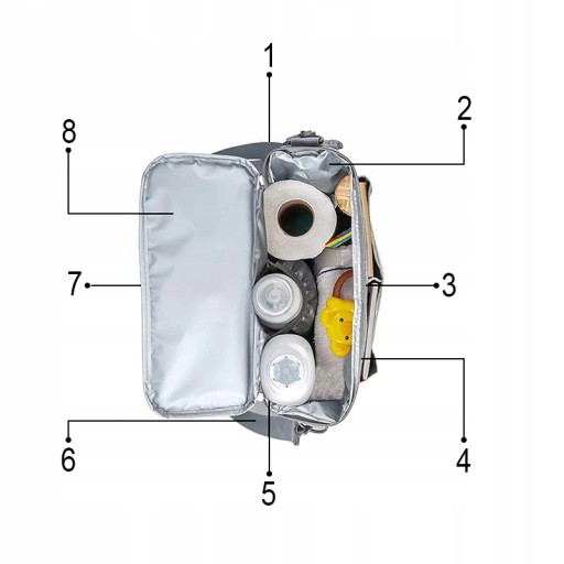- 1 duża komora wewnętrzna zamykana na zamek, w tym jedna mała przegroda z boku na butelkę z mlekiem,