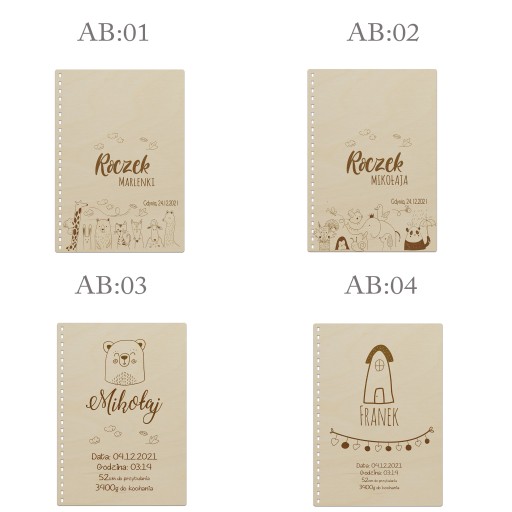 PIĘKNY DREWNIANY ALBUM Z METRYCZKĄ TWOJEGO DZIECKA.