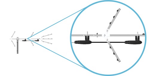 W antenie zastała zastosowana zwrotnica na złącza F, która zapewnia dobre dopasowanie anteny oraz małe straty sygnału. Ponadto, montaż przewodu antenowego jest bardzo prosty i wygodny. Dodatkowym atutem jest możliwość zastosowania złączy kompresyjnych, które zapewniają najtrwalsze połączenie (na przewodzie łączącym symetryzator ze zwrotnicą zastosowane zostały złącza kompresyjne).