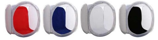 W zestawie dostają Państwo 4 kolorowe tła do namiotu - białe, czerwone, czarne oraz niebieskie: